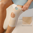 De open patella-uitsparing zorgt ervoor dat er geen extra druk op de knieschijf komt, wat het draagcomfort verhoogt. Dankzij het slanke ontwerp past de brace eenvoudig onder een broek en blijft hij goed op zijn plek tijdens gebruik.
